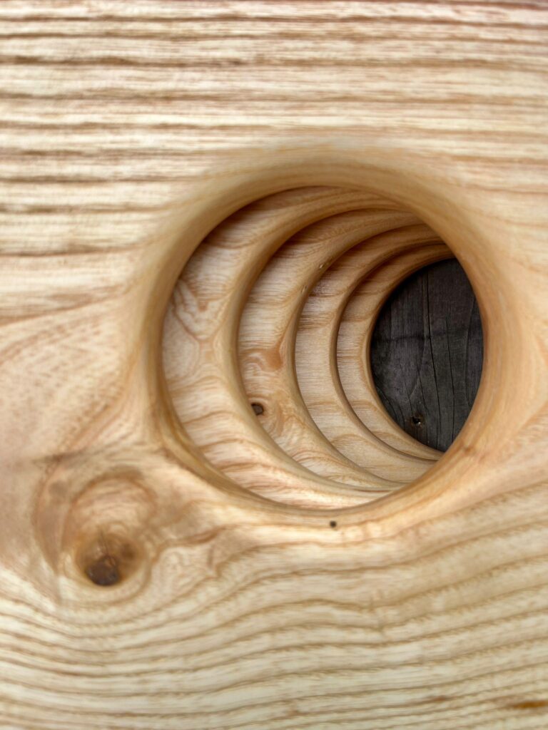 Z szacunku dla żywej przyrody wszystkie moje meble tworzę wyłącznie z drzew uschłych, powalonych przez wiatr oraz z odpadów pozrębowych. Każdy kawałek drewna nosi w sobie historię – ślady czasu, pęknięcia, naturalne niedoskonałości. Właśnie one stają się źródłem piękna.
