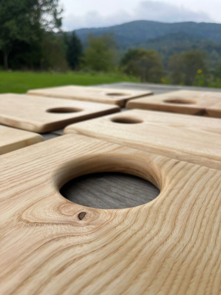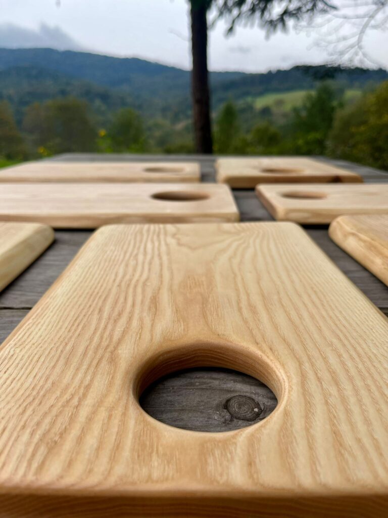 Ręcznie wykonane deski z jesionu łączą naturalne piękno z trwałością. Jasne, ciepłe drewno o wyrazistym usłojeniu nadaje każdej sztuce niepowtarzalny charakter. Powierzchnia jest starannie szlifowana i zabezpieczona naturalnym olejem, dzięki czemu deska jest odporna na wilgoć i bezpieczna w kontakcie z żywnością.